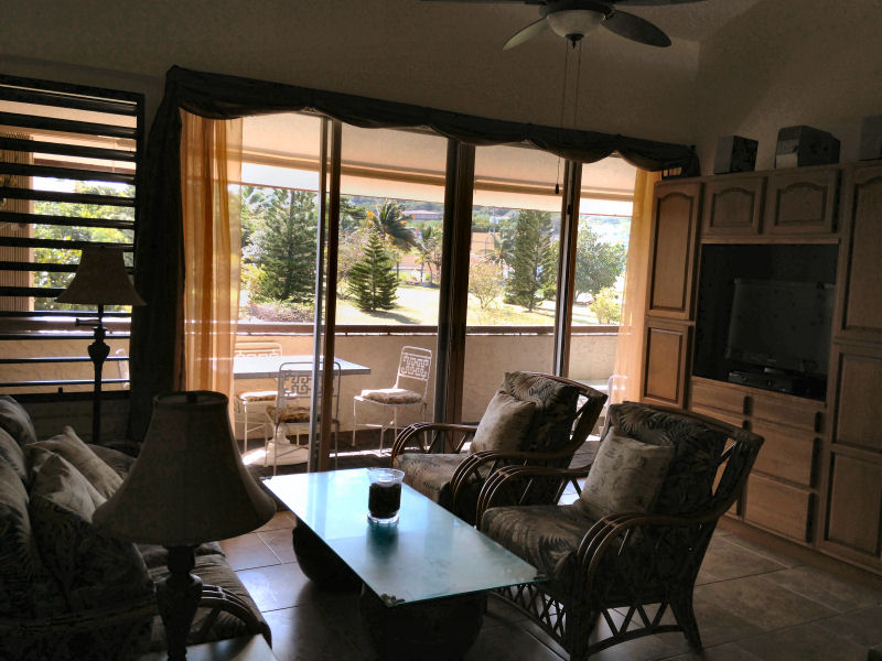 The spacious gallery overlooks a peaceful lagoon, A/C units in each bedroom and in the living room, or open the doors and enjoy the ocean breezes. Ceiling fans in every room.
