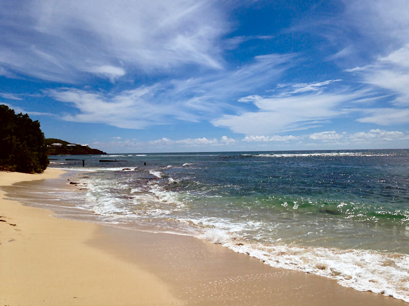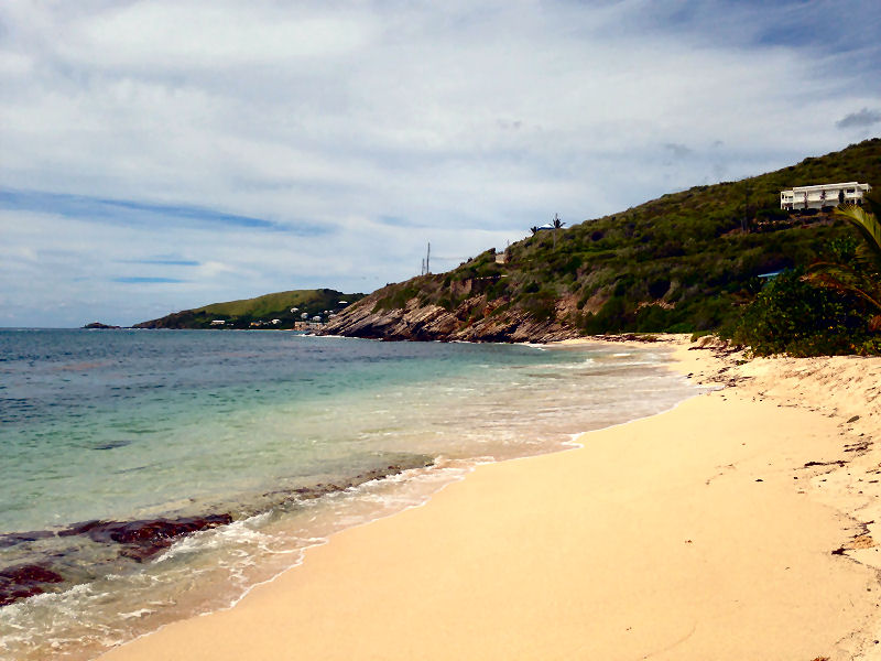 This beach is on the East End and is accessed though the Estate North Grapetree road. Turn in at the stone pillar with the "C" on it and follow down to the beach. You will make a right, head to the end and park. You walk BETWEEN the houses along the property line. Please do not walk across people's property, this is a residential area and private lots.
