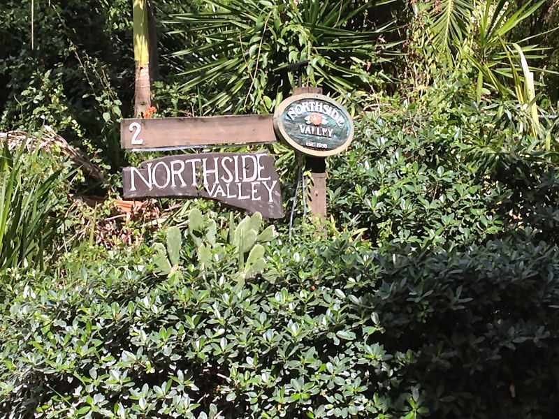 On your right, look for a wooden sign that says "Northside Valley"