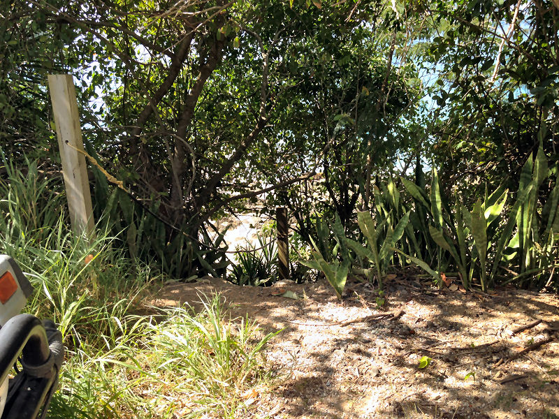 Directly across the road is a post with hand rope leading down to the beach.It is a short way down, but STEEP so watch your step.