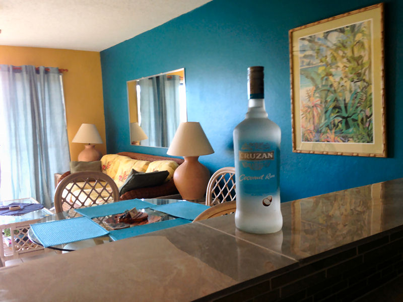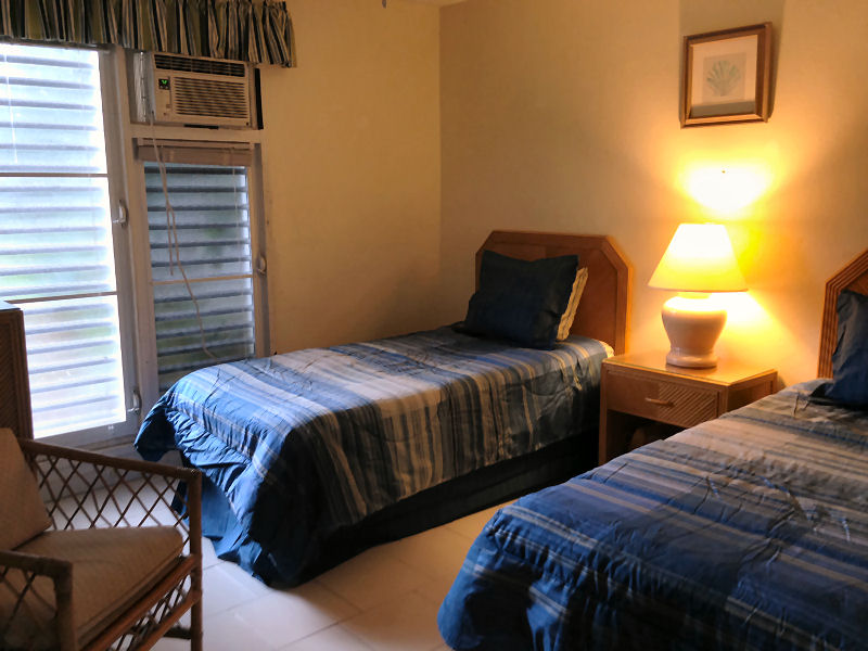 This spacious 2 bed, 2 bath condo has a great view of both the turquoise blue Caribbean and the lush gardens of Colony Cove.
