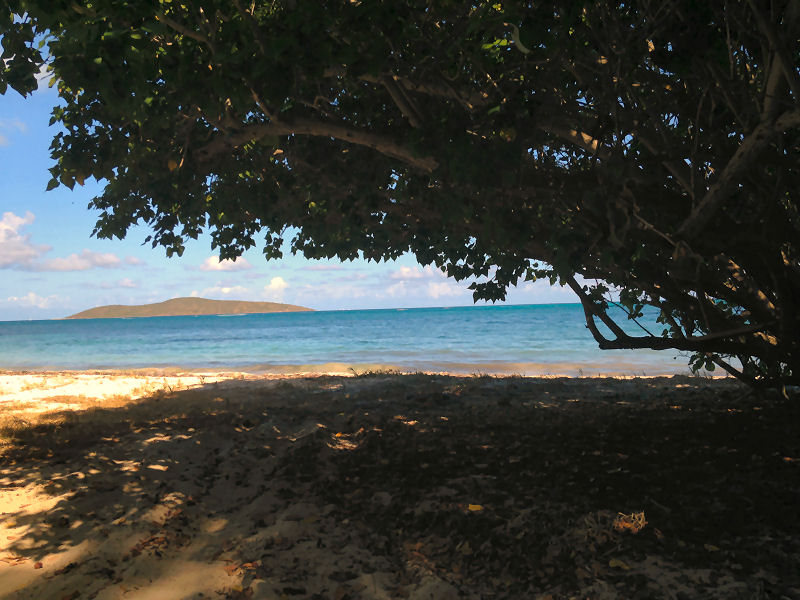 IMMEDIATELY after you turn off of either East End or South Shore Rd toward Point Udall, look to your left for the dirt road leading down into the trees.